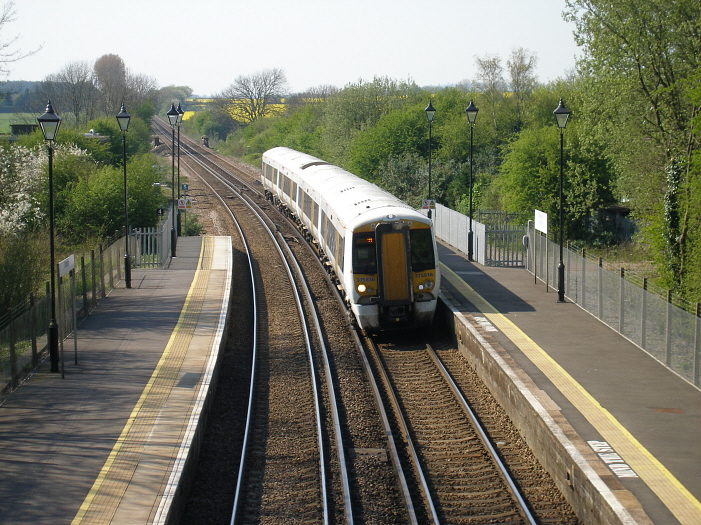The recent platform extensions, complete with short sections of new palisade fencing, are witnessed as Class 375 No. 375816 trundles in from Lenham with a stopping service. © David Glasspool