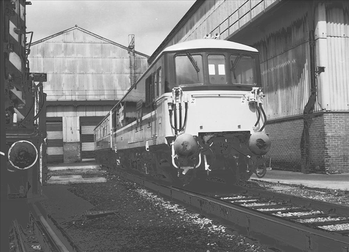 On 7th June 1986, Class 73 No. 73142 ''Broadlands'' was on display at a Chart Leacon Open Day. It was residing on those tracks not visible from the running lines. The Electro -Diesel was seen pairing with former ''Hastings'' unit buffet car No. S60755. The buffet vehicle formerly belonged to ''Hastings'' unit No. 1036, having been removed from this formation in 1964. In 1969, it re-emerged as an inspection saloon for the General Manager of the Southern Region. © David Glasspool Collection