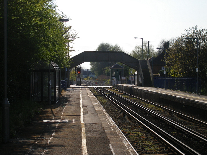 The oldest features at this much rationalised station are the railings on the right, of SE&CR origin, lining the rear of the ''down'' platform, and the SER signal box. Both clapboard waiting shelters were on the far side of the footbridge. © David Glasspool