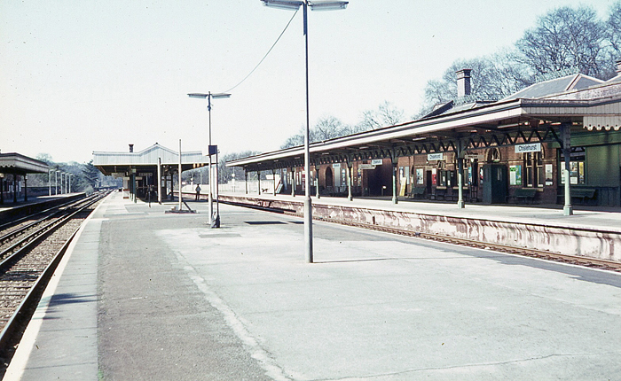 A London-bound view in 1971 shows that the main station building of the little-used "up" fast platform, commissioned as part of the 1904-completed quadrupling, was still in existence at this time, although the length of its canopy had already been halved. The island platform canopy had been subject to similar economies, the plain end valance being obvious, and had also lost some offices. © David Glasspool Collection