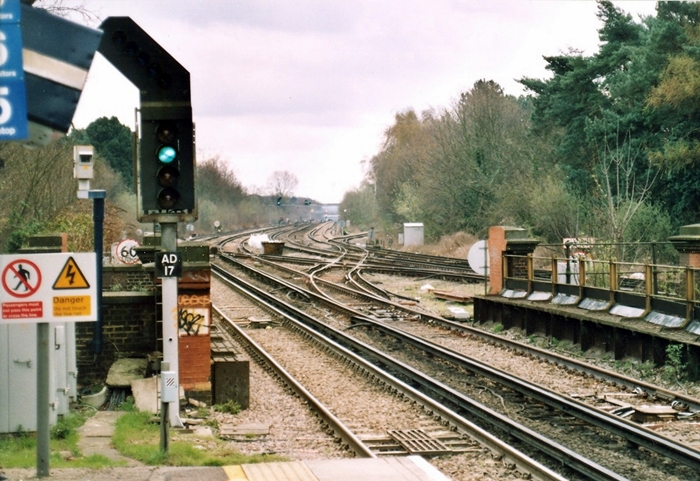 A southward view from the platforms of Chislehurst on 19th April 2006 shows the diamond crossing between the ''slow'' and ''fast'' lines. Also revealed is the end of the ''up'' Chatham Loop, in the centre background. © David Glasspool
