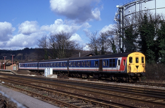 No. 205025 is seen departing the ''down'' bay platform at Oxted, bound for Uckfield. This unit can now be found preserved in two-vehicle form on the Mid-Hants Railway. © David Glasspool Collection