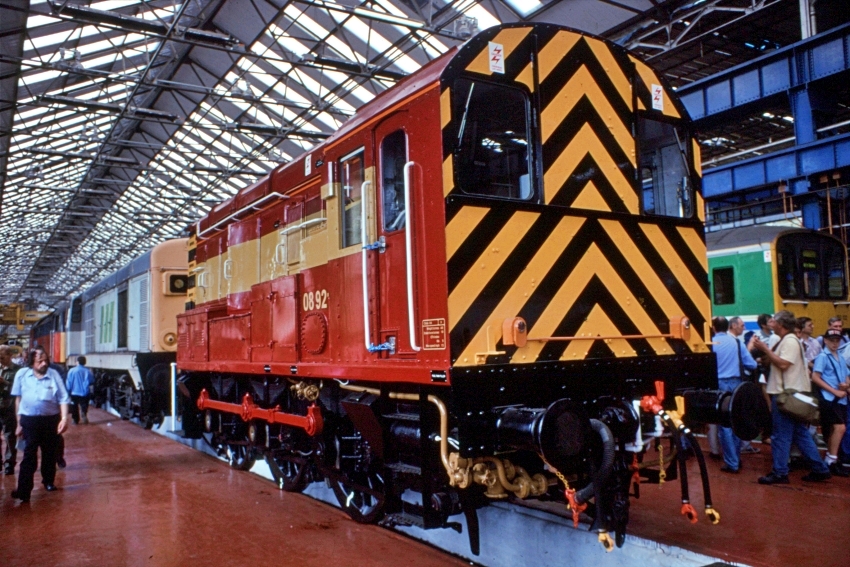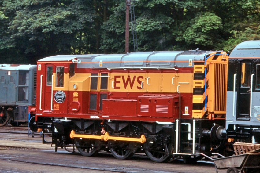 No. 08921 has the distinction of being the first Class 08 to be painted into the Red and Gold livery of private operator English, Welsh & Scottish Railway (EWS) (ref: The Railway Magazine, October 1996). EWS was a brand of a consortium by the name of North and South Railways, the latter led by US-based Wisconsin Central, which took over most of BR's freight operations at privatisation (Freightliner being a notable exception, having been the subject of a management buyout).