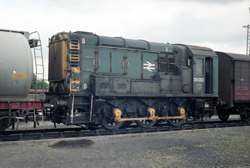 No. 09023 is seen at Chart Leacon Depot. Like No. 09008 seen above, by summer 1991 No. 09023 had also became part of a fleet of shunters based at Selhurst. In 1995, No. 09023 was reported as being at Selhurst awaiting scrapping (The Railway Magazine, March 1995). Evidently, No. 09023 was given a reprieve, because it was at Old Oak Common the following year, Norwood Junction in 1997, and by 2000 had become part of a pool of EWS shunters allocated to the North West. By March 2012, No. 09023 was sitting in the scrapyard at EMR Kingsbury, Tamworth, Staffordshire. © David Glasspool