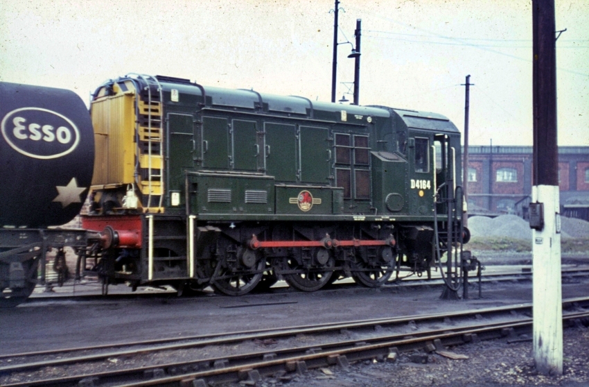 Swindon once again, but this time with No. D4164 to illustrate the period livery in a splendid colour shot. Given the colour scheme, number, and location, your author estimates this photograph to have been taken in 1967: in the period to 8th May of that year, the locomotive was reallocated to 82C (ref: The Railway Magazine, July 1967). No. D4164 was renumbered 08934 under TOPS (ref: The Railway Magazine, September 1974) and, by 2002, was based at Willesden with Virgin West Coast. From there, the shunter transferred to Alstom (The Railway Magazine, April 2002); then, in 2010, transferred from Alstom's pool of "Traincare" locomotives based at Stonebridge Park, Wembley, to GB Railfreight at Whitemoor Yard, Cambridgeshire (ref: The Railway Magazine, January 2011). As late as June 2022, No. 08934 was still at Whitemoor Yard, albeit out of use. © David Glasspool Collection