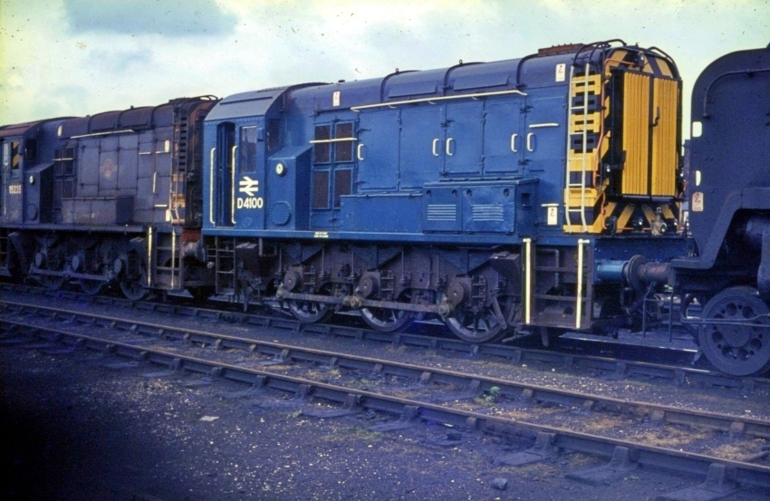 No. D4100 is seen ex-works at Eastleigh in the then new BR blue colours, but with pre-TOPS number. An interesting livery variation here is the blue of the front buffer beam. The shunter was sandwiched in-between Bulleid shunter No. 15235 (latterly Class 12) — wearing BR Green with "late" crest — and a rebuilt version of one of the same engineer's Pacific steam locomotives. The April 1966 edition of The Railway Magazine had No. D4100 as being allocated to Ashford (73F); the September 1967 edition of the same publication noted a reallocation to 70B. In March 1952, a new No. 15235 was noted as being allocated to Norwood Junction; for the period ending 9th June 1969, The Railway Magazine (August 1969) gave its reallocation as being to Hither Green (73C). Under TOPS, No. D4100 became No. 09012. © David Glasspool Collection
