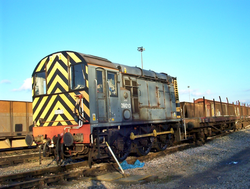 No. 09010 is seen at Hoo Junction "up" yard, still wearing what your author believes was a well-weathered unbranded BR Blue livery. Purchased by the South Devon Railway for preservation in 2010, No. 09010 arrived there from Hither Green Depot on 30th September of that year and returned to traffic on that line on 30th July 2011 (ref: The Railway Magazine, October 2011). © David Glasspool