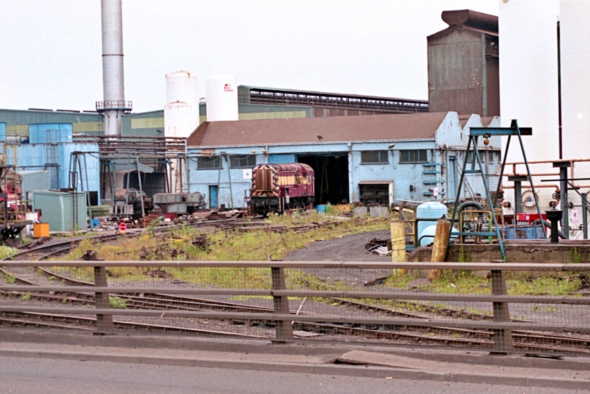 No. 08921 again, but this time in the decidedly industrial surroundings of Sheerness Steel Works. The livery applied in 1996 is now looking somewhat battle-worn and the locomotive had by this time acquired the name "Pongo". No. 08921 was not the only shunter on site that day; it was in the company of at least two 0-6-0 diesel hydraulics that belonged to the steel works. The mill ceased to produce steel in November 2011 and went into administration in the following January. Demolition of the site began in 2016. © David Glasspool