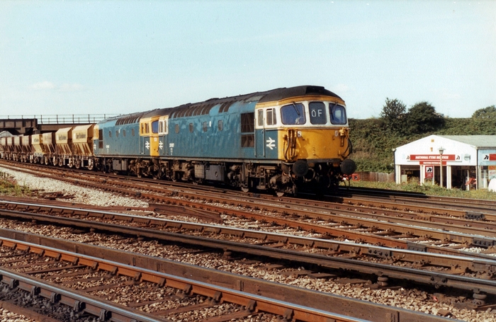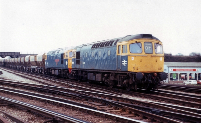 On 31st March 1982, at 10:16, locomotive Nos. 33010 and 33027 ''Earl Mountbatten of Burma'' are observed coming off the Medway Valley Line into Strood. The pair are hauling thirty-six empty ARC (Amey Roadstone Corporation) PGA hopper wagons from Allington to Westbury. © Chris