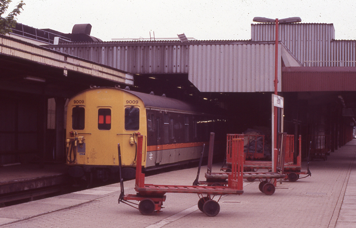 With all three sets of double doors open on this side, MLV No. 419008 is seen in the dedicated parcels bay platform at Tonbridge. The practice of loading and unloading mail here was superseded by the opening of a completely new platform alongside Tonbridge Sorting Centre in 1995. © Treflyn-Lloyd Roberts