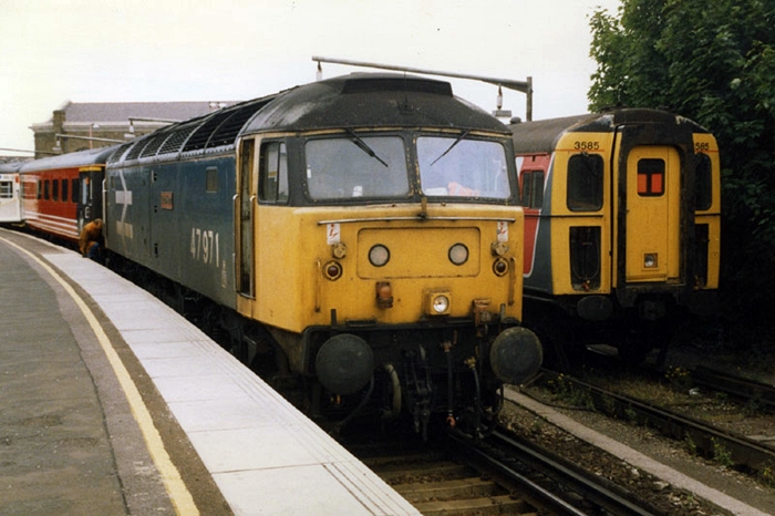 No. 47971 is seen a year later at Ramsgate, now with Virgin-liveried Mk 2 stock in tow and alongside 4 VEP No. 3585. The train is stabled in the same platform as that in the previous picture, but the diesel is at the opposite end of the formation. © Andre Kent