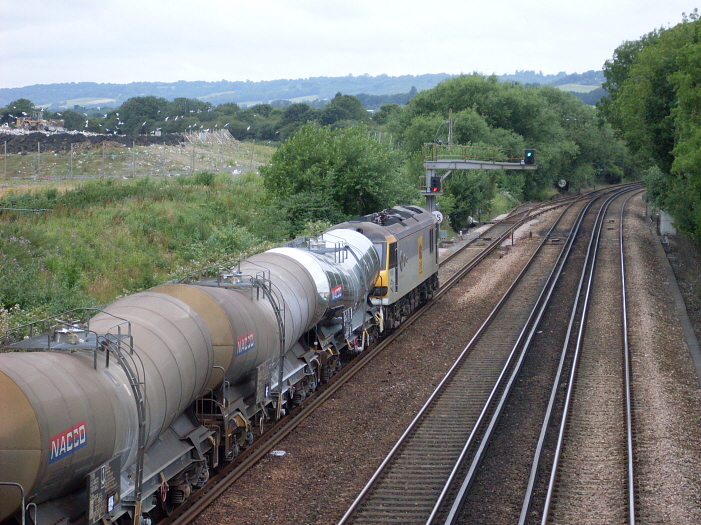 A Class 92 is seen stabled in the freight loop at Otford Junction, fronting the 6B28 Dollands Moor to Wembley china clay tanks. The freight loop here was one of three which were approved by Parliament in 1990, the others being at Headcorn and Borough Green. They allow freights to clear the main running lines to allow faster passenger services to overtake. © Edward Clarkson