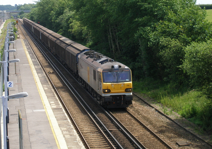 Both Sandling and Westenhanger stations were once deep in rural territory, but the landscape changed dramatically on the advent of the double-track CTRL "Section One". In the above picture, No. 92024 "J.S. Bach" is seen passing the "down" platform at Westenhanger, having then recently left the yard at Dollands Moor. © David Glasspool