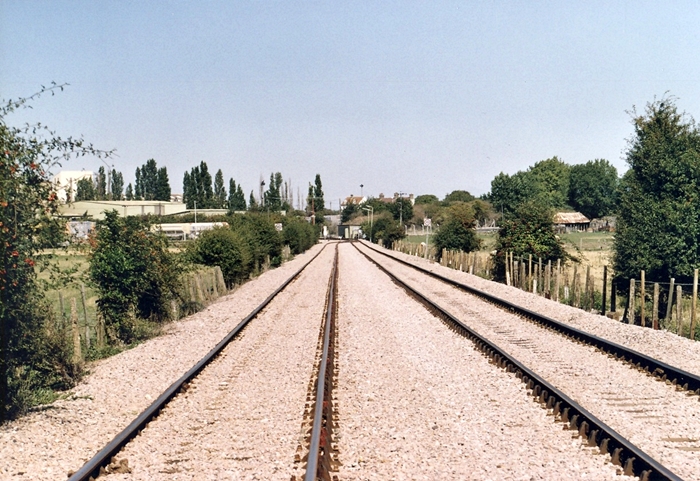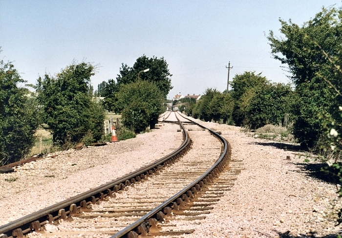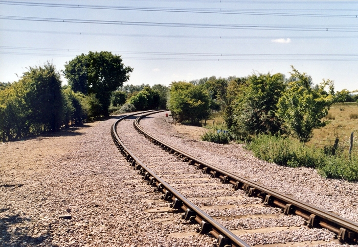 The line has curved to the extent that we are now looking in a north westerly direction towards the gravel works. The guide rail ends as the curve straightens out, but the track formation briefly becomes double in the form of a passing loop. © David Glasspool