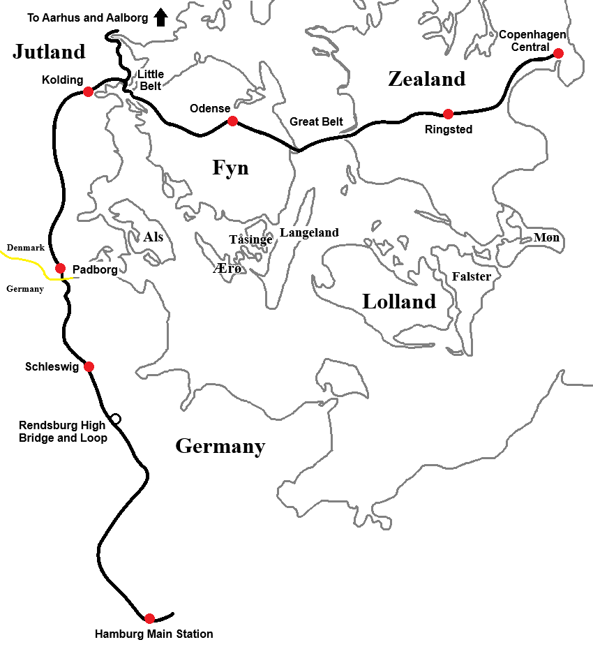 This page looks at the Copenhagen Central to Hamburg portion of the journey, timetabled for a duration of 4-hours 38-minutes over 505-KM of route.