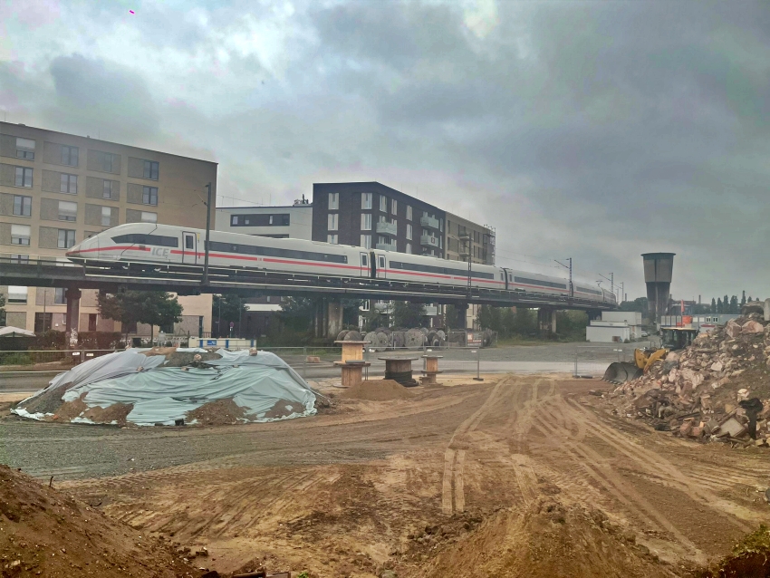 South of the sidings at Eidelstedt are a series of triangular junctions where routes to Hamburg Main Station (the destination of our train) and the terminus of Hamburg-Altona diverge. The latter resides about 4.6-KM west of the former as the crow flies, or about 6.2-route-KM, in Hamburg's most western district of Altona. A series of long-distance trains start/finish at Altona, whilst serving the Main Station en route; one such example is here, where the rear of an ICE 4 unit is seen heading away from the camera towards the city's western terminus. The single-track viaduct seen here allows trains from the Main Station direction to access the terminus at Altona. Hamburg Main Station is in the direction to the left of this photograph. © David Glasspool