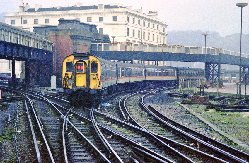 "Jaffa Cake" 4 CEP No. 1548 is seen departing towards Dover Priory with a Victoria service, and will likely join to another unit from Ramsgate after arrival at Faversham. © David Glasspool Collection