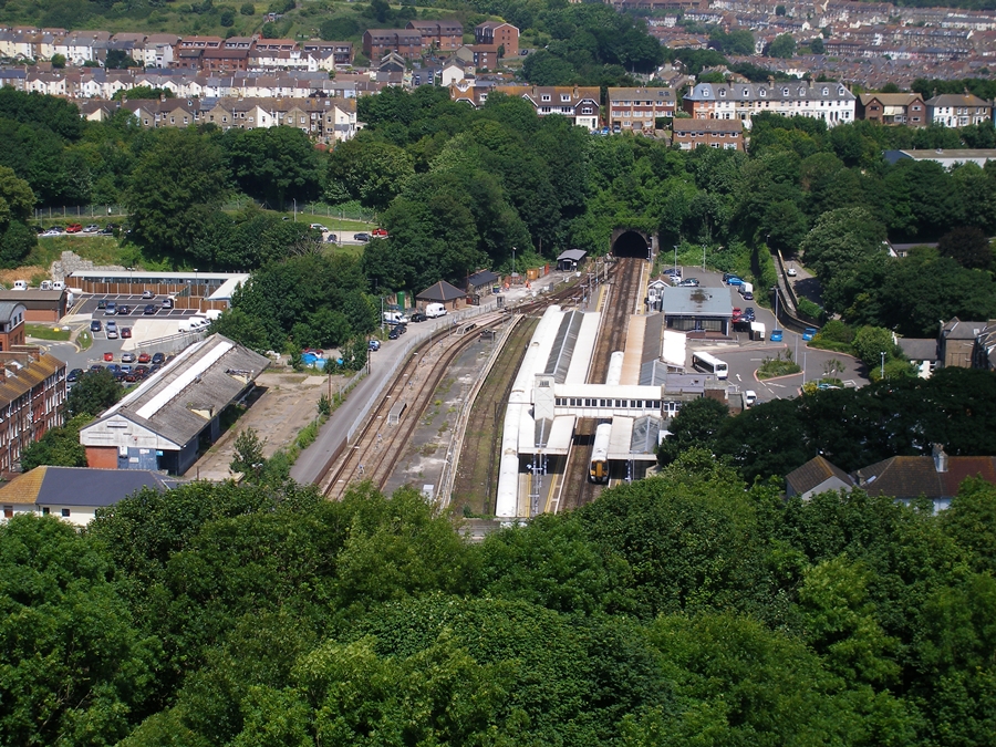 Three northward-facing carriage sidings remain to the west of the platforms in this 21st June 2007 view. Originally, only the overgrown siding nearest the platform was designated for carriages: the additional two have been absorbed from the now closed goods yard, which at its peak had four tracks (including those mentioned). Most carriage storage took place on the opposite side of the running lines, behind the signal box, where a trio of northern-facing sidings were in evidence. These were decommissioned in April 1969, the site, typically, being converted into a car park. © David Glasspool