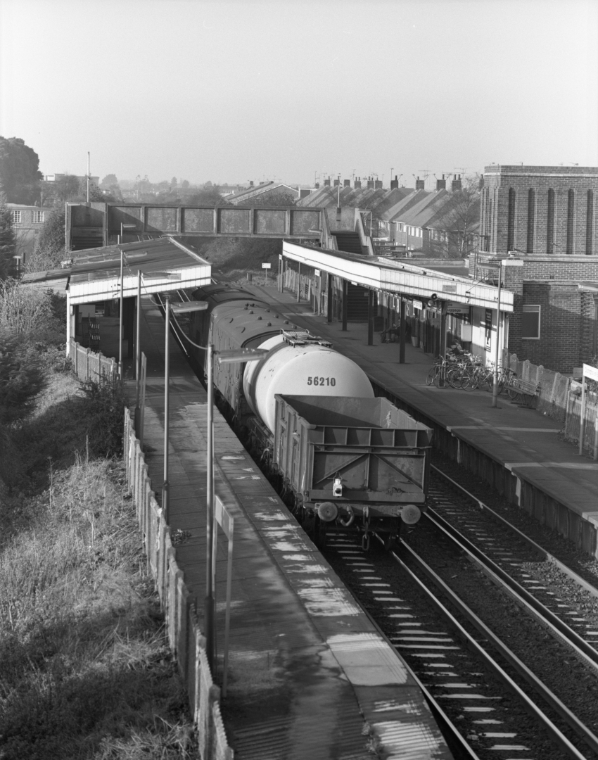 An Electro-Diesel heads west with a short freight consist past a station which was largely in its original form. This photograph is taken from Shaftesbury Avenue, which is carried over the railway upon what is referred to in the main text as "Boulevard Bridge". The canopies still sported their SR plain timber valances, and the same company's concrete fencing lined the rears of both platforms. Note the canopy on the left (platform 2) had a small timber shelter at its rear. The footbridge was replaced in 2008 after just over 70 years of use. John Vaughan / © David Glasspool Collection