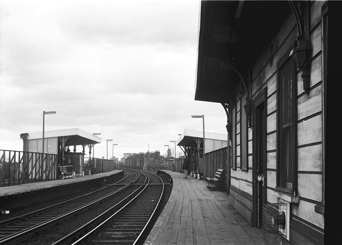 Looking in the London Bridge direction, we see the results of the 1973 partial demolition. Both platforms once boasted one long canopy each, but the middle sections were dismantled, creating four separate waiting shelters, two on each side. Worthy of note are the timber platforms, ornate canopy struts, and a still extant track foot crossing. SR ''Target'' name signs were still evident at this time, but the Swan Neck lamps had been replaced by more modern posts. © David Glasspool Collection
