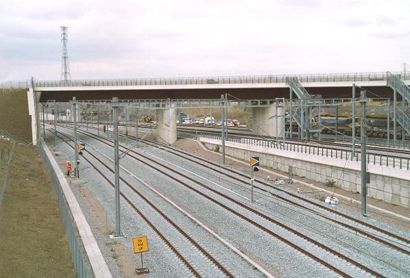 A view towards the Thames Tunnels reveals the 9000 tonne bridge carrying the North Kent Line over the international lines. It is worth noting the substantial staircases which provide access between the two routes for maintenance purposes. © David Glasspool