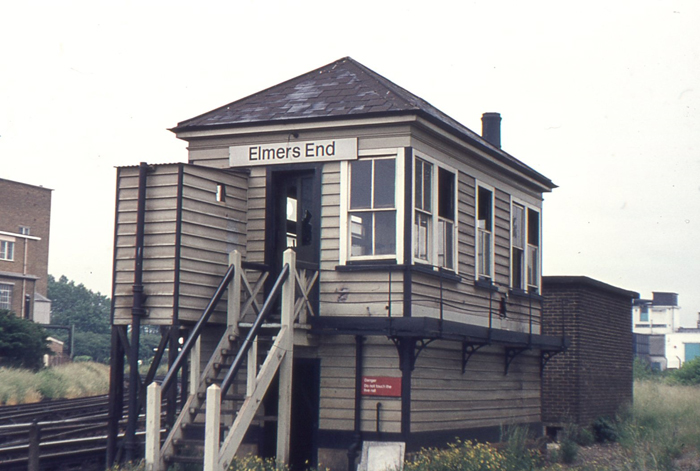Under the Southern Railway, electrification of ex-SE&CR suburban lines using the 660-Volts DC third rail system pioneered by the LSWR was swift. Cannon Street and Charing Cross to Addiscombe, Hayes, Orpington, Bromley North, and Beckenham Junction electric services were earmarked for a 1st December 1925 start, but power supply problems pushed this back to 28th February of the following year. As part of the works, an electricity substation was built at Elmers End, beside the "down" side bay line used by Hayes trains. This was of a standard design, comprising a steel frame surrounded by red brick, and housed three rotary converters rated at 1,500 kW. The converters stepped down electrical current supplied by Deptford Power House to 660 Volts DC. It was also around this time that the SR's trademark swan neck lamps upon barley-twist posts were installed along the platforms.