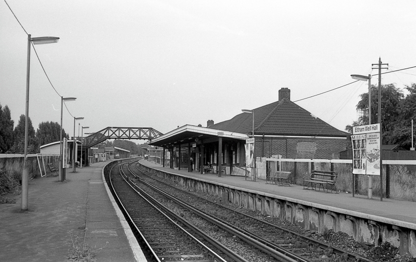 Closure of Eltham Well Hall and Eltham Park stations was scheduled for Saturday 2nd March 1985, when the new platforms east of the former would be brought into use with a huge interchange with bus services. Poor weather hampered construction and pushed back the commissioning of the new station, both the existing sites lingering on until Saturday 16th March 1985. The last train to call at Eltham Park and Well Hall stations was the 23:43 Charing Cross to Dartford. Whilst the original main building of 1908 and sections of platform remain in evidence today at the former site of Eltham Park, at Well Hall not a brick remains.
