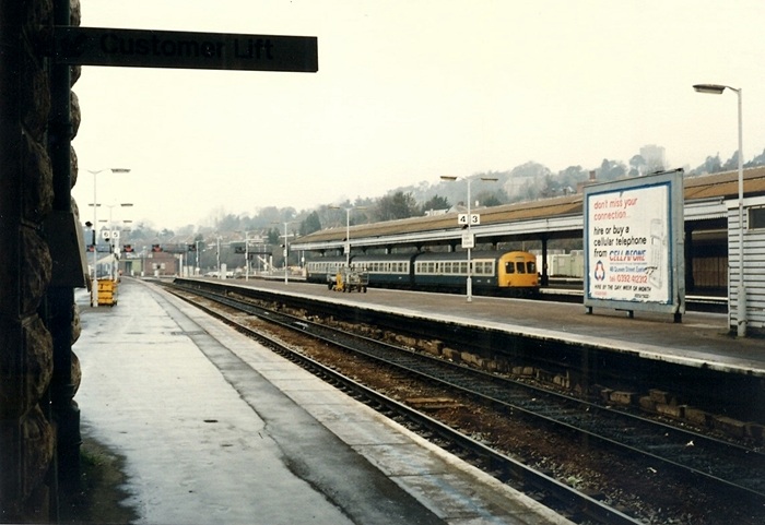 A Class 101 is seen alongside platform 1 with a service from Barnstaple. Platform 2 is the northward-facing bay behind the unit. © Mike Glasspool