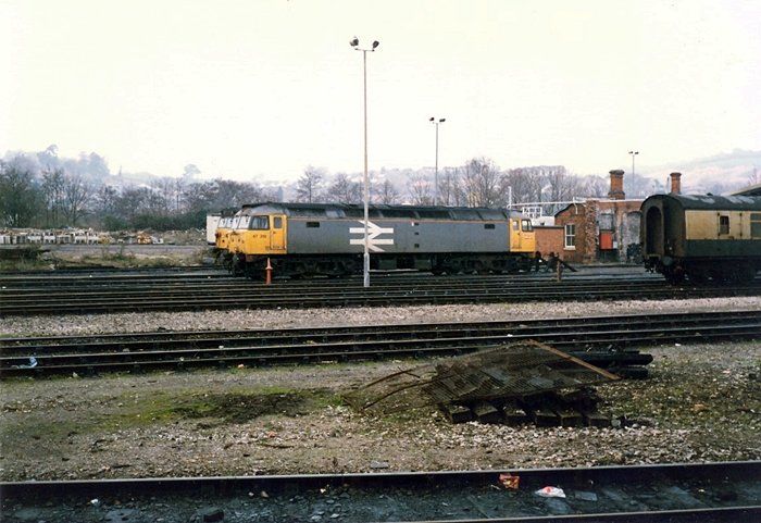 The double-track in the middle-distance represent those lines which once provided freights with a route avoiding the platforms. We can see to the right of No. 47318 those red brick offices which once belonged to the engine shed. © Mike Glasspool