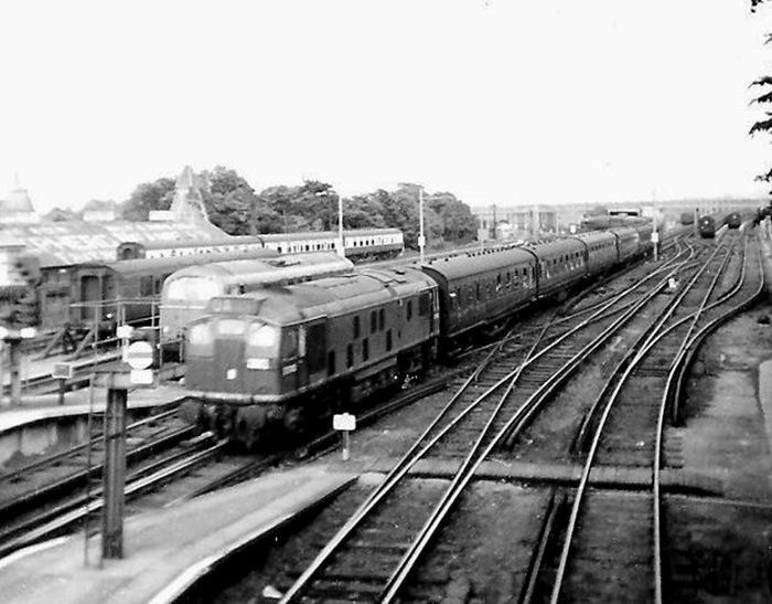 A Midland D5000 series diesel is seen approaching from the Herne Bay line, seemingly with carriage stock from