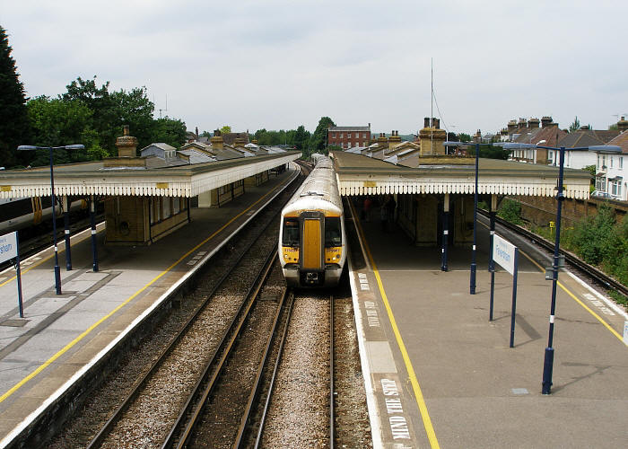 Electrostar No. 375607 arrives with a second unit in tow at Faversham, in this westward view. Here, the formation