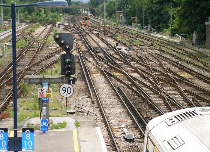 All clear! No. 375607 receives the green light to proceed towards the junction and onto the route to Thanet.