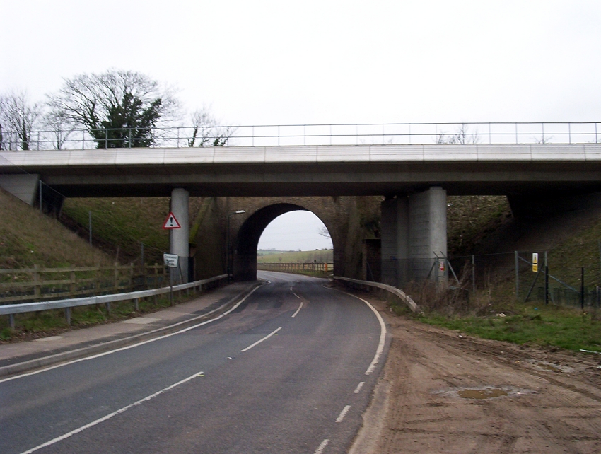 The original Gravesend West branch single-arch bridge can be seen behind the new structure in this westward view. This was scheduled for demolition as part of the work here, but local residents on the west side of the bridge successfully protested for it to remain, allowing it to act as a sound barrier. © David Glasspool