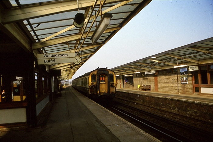 Today, this is a barren station, devoid of any form of finesse or style; it is the result of a rebuild and subsequent degrading. However, once upon a time this was a layout demonstrating the quintessential character of the South Eastern Railway (SER), from the canopies to the signal box. The SER began running to Ashford on 1st December 1842, after an extension from Headcorn, but it was not until 28th June of the following year that Folkestone was reached. Here, the line terminated at a temporary station whilst the feat of building the nineteen-arch Foord Viaduct was undertaken. With arches 100 foot in height, trains were able to cross the structure from 18th December 1843 onwards, a permanent ‘’Folkstone’’ (note the initial lack of a central ‘’e’’) station being provided on its eastern side. Folkestone West was the next station to follow, this being opened as ‘’Shorncliffe Camp’’ one mile to the west of the viaduct, on 1st November 1863. The harbour branch came into use on 1st January 1849 and finally, what is now known as ‘’Folkestone Central’’ was opened to traffic on 1st September 1884, a third of a mile west of the viaduct. From the outset, the station was named ‘’Cheriton Arch’’, but in September 1886 this was altered to ‘’Radnor Park’’.