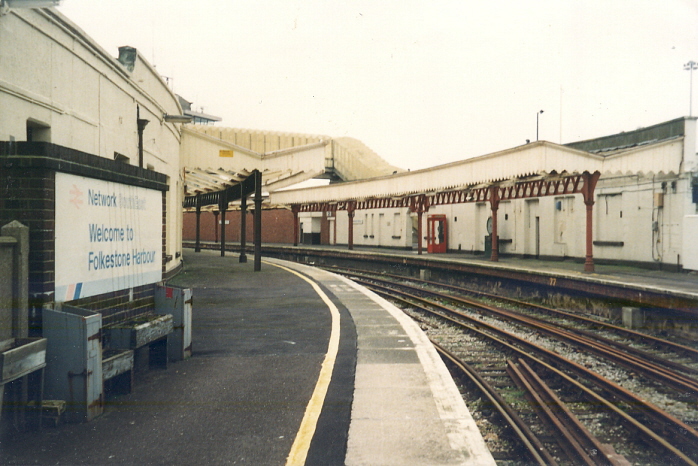 An October 2001 seaward view reveals the SER platform canopies, which indicate the extent of the original 1893 platforms. The SER ''up'' side signal box formerly resided immediately beyond the canopy, where the red brick wall begins in the background. The footbridge in the background was by this time closed off, having originally been erected in 1980 for the ferry terminal. Scheduled rail services had ceased in May, and the ''down'' platform had already been taken over by the VSOE company, the canopy framework sporting a brown paint scheme. © Mike Glasspool