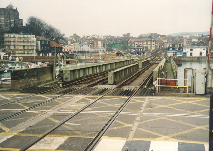 A landward view includes the steel swing bridge of 1930, which could deal with heavier boat trains than its predecessors. The ''Inner Harbour'' is on the left, the ''Outer Harbour'' is on the right. Before the advent of the swing bridge, the railway used to terminate in limbo within the water. © Mike Glasspool