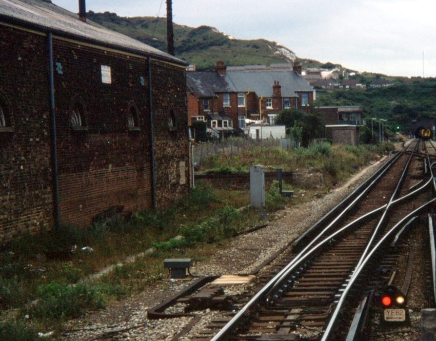 The station remained in use until September 1965, closing to traffic from 6th of that month. The town was left with three stations thereafter, that of Folkestone Central being under a mile west of the closed site. The “down” side station building, both footbridges, and canopies, were taken down very soon after closure. The “up” side main building and the “down” side goods shed, both of 1843 vintage, remained standing, the former finally being demolished in spring 1978. The former “down” side goods yard site and station forecourt were redeveloped into residential flats in the 1980s. The goods shed of around 1900 origin was finally demolished in the late 1990s to make way for a new public road, this of which was built in conjunction with a depot for the water board.