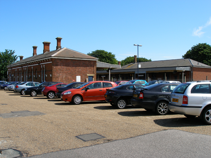 This is the former site of the ''up'' side goods yard, which remains undeveloped and instead serves as road access to the line. © David Glasspool
