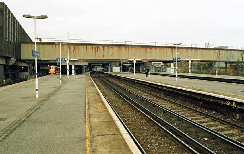 The footbridge across the tracks beyond the southern end of the platforms has been a feature since the station rebuild of 1907. The structure was refurbished in November 2013 in conjunction with the works to provide a seventh platform. All sidings south of the station are now electrified. © David Glasspool