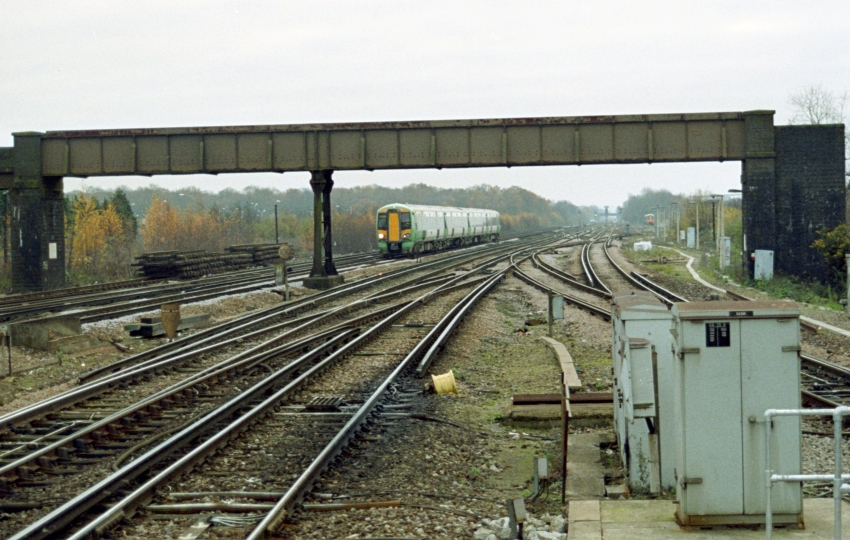 In 2013, work commenced on a £53 million project to commission a seventh platform at the Airport station, east of the existing islands. As part of this scheme, the SR concrete electricity substation, which was situated upon part of the required site, was demolished, after a career of about eighty years. The scheme was designed to remove a series of conflicting train movements, which in turn would free up capacity at an already very busy station. The intention was for platform 7 to serve southbound stopping trains; platform 5 and the little-used No. 6 would become dedidcated to the Gatwick Express, with this brand's passenger lounge above the island. Until that time, the Gatwick Express typically used platform Nos. 1 and 2, which served the slow lines; this involved these trains having to transfer from the fast to the slow lines, thus blocking the throat of the station. Since platform Nos. 5 and 6 were served by the fast lines, concentrating the Gatwick Express on this island removed the aforementioned conflicting movements; however, the reality was that the expresses would operate through any platform. As for platform Nos. 1 and 2, capacity would be freed up for the Great Western trains from Reading and have the advantage that the diesel multiple units forming these services could remain in the station after terminating, rather than having to head to those sidings to the south. Tracklaying for the new platform began at the start of November and included the renewal of the public footbridge situated about 60-yards beyond the southern ends of the platforms. Platform 7 was formally opened on Monday, 3rd February 2014, and the first scheduled services started to use it exactly a week later.