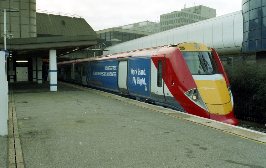 A motley collection of structures form the backdrop of this view depicting Class 460 No. 460003 awaiting departure from platform 1 with the non-stop shuttle to Victoria. As per some of the carriage sets of the 1984 stock, a number of the Class 460 units sported vinyl overlays promoting "Continental Airlines". This brand disappeared in 2012, after the company merged with "United Airlines". © David Glasspool