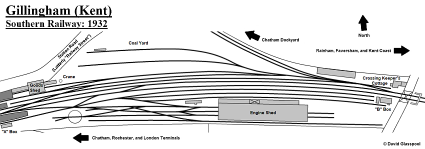 When the East Kent Railway opened a double-track line between Faversham and Chatham on 25th January 1858, the area that is today known as Gillingham went by the name of "New Brompton" and was considered an eastern suburb of its better-known neighbour. A "New Brompton" station opened with the line, being situated outside of the residential area amongst flowing fields, but no motive power depot was evident from the outset. This is unsurprising, given that the line went no further than Faversham in the east and Chatham in the west, and engine sheds were established at both termini.