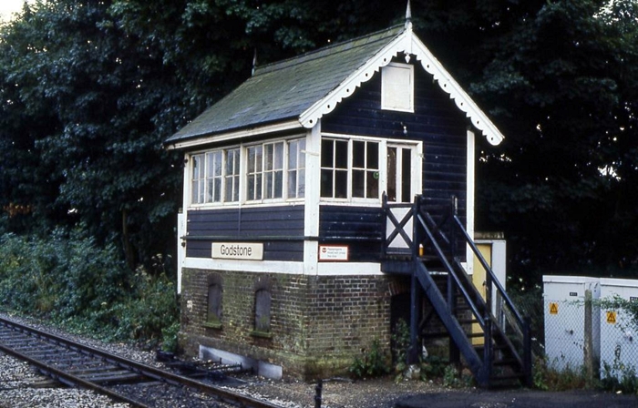 Godstone signal box originally could be switched out when not required until Redhill "B" signal box was abolished. This occurred between Friday 10th May and Sunday 12th May 1985. After that date Godstone became a fringe box to Three Bridges Signalling Centre, which required it to be open at all times. No new signals were placed within Godstone's area of control although the signal box diagram gained additional track circuits.