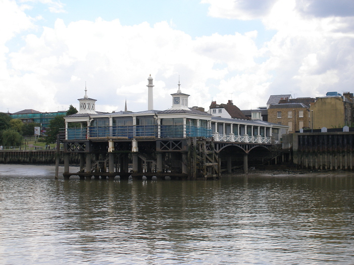 The design of the Town Pier was produced by William Tiernwey Clark, and construction was subcontracted to Mr William Wood of Gravesend, at a cost of £8,700 (about £705,350 at 2008 prices). Whilst the 1863 Bill was being read by Parliament, a temporary jetty had been erected at the Town Quay. This was then closed and replaced by another temporary landing stage at West Street (later known for the LC&DR station of 1886), the latter of which opened on Monday 27th January 1834. The Town Pier was opened with much ceremony on 29th July 1834, which marked the closure of the interim affair at West Street. The ceremony, organised by the Corporation of Gravesend, was attended by nearly three hundred guests, which included representatives of the Corporation of the City of Rochester, the Earl of Darnley, the Clergy, the Commandment of Tilbury & Gravesend Forts, and a number of other military personnel. Celebrations began at the Town Hall, and then a parade marched on to the Town Pier, where steam packet ‘’Mercury’’ awaited. The Mayor of Gravesend embarked, with a complement of guests, and the boat embarked on a short trip down the Thames, in the company of steam packets ‘’Medway’’ and ‘’Star’’. On return to the pier, the Mayor and guests enjoyed a banquet underneath a canvas covering, lined with celebratory flags. The occasion was further marked by the ringing of church bells and, in the evening, a firework display. The first commercial ship to use the Town Pier was steam packet ‘’Comet’’, which picked passengers up at 07:00 the following day for a trip to London.