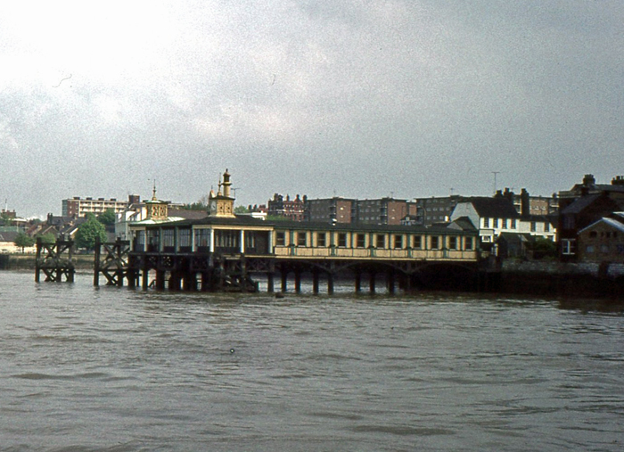 The sole Kent "station" of the London Midland Region, a somewhat grubby Town Pier is seen in the 1970s. The Tilbury ferry had transferred to a pontoon a little further upstream and, during this decade, the Town Pier hosted offices and a restaurant. Earlier, from 9th January 1961, the Town Pier was closed for about three weeks to enable BR to make structural alterations to the pontoon to accommodate the new vessels then being introduced. © Roger Goodrum