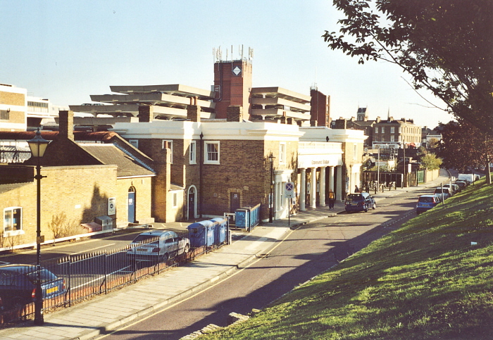 The SER building of 1849 is seen to good effect, the restored brickwork and repainted stone lining being in full view. The structure is a much larger version of the main building at Erith, although the latter does not feature an entrance supported by columns. The single-storey pitched-roof appendix on the left is an addition made by the SER in about 1895, and incorporates the gentlemen's toilets. © David Glasspool