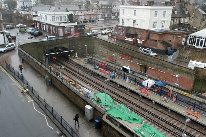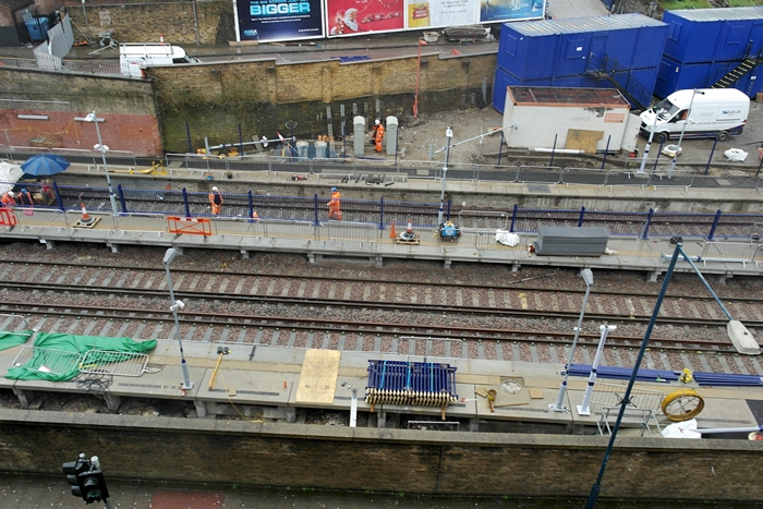 In the foreground of this view is the eastern extension of the ''down'' platform. The railings being employed here match the attractive design of those which line long sections of the station's perimeter. © David Glasspool