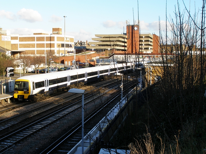 The ''main line'' station feel is brought to the fore as unit Nos. 375708 and 375823 are seen again taking the ''up'' through road. This was a daily empty stock movement, routed via Woolwich Arsenal. © David Glasspool