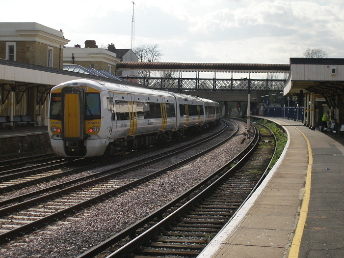 Class 465 No. 465167 is just about to depart on the rear of the 14:10 service to Gillingham, from platform 2. The base of the former water tower, demolished the following year, can be seen on the right, through the branches of the trees. Works were underway to renovate the booking halls on both platforms. © David Glasspool