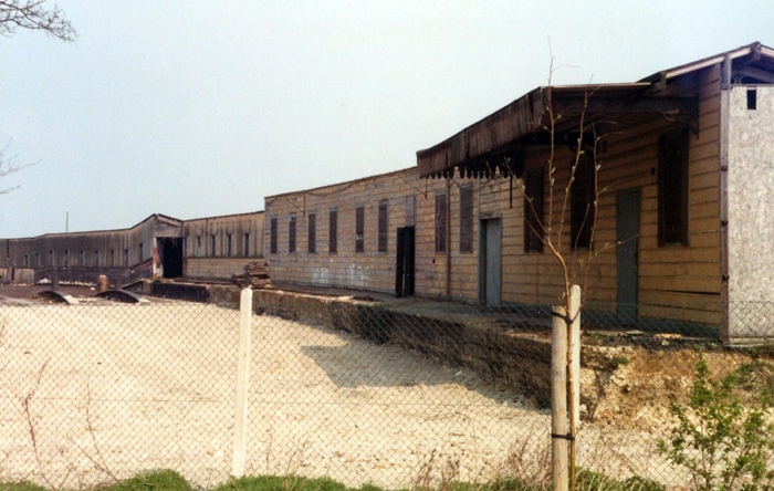 This 1991 view can be compared to the previous 1984 photograph on this page. The short section of canopy seen here is the end of that in view in the 1984 scene. The above was captured in the middle of major demolition work, which left just the viaduct and the pier supports standing. The start of the pier section is marked by the curved ramps emerging from the former track bed. © Roger Goodrum